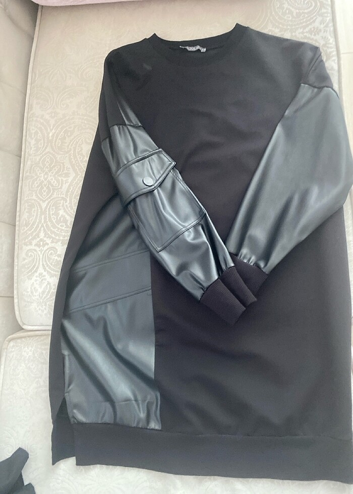 Dizüstü deri detaylı penye kumaş