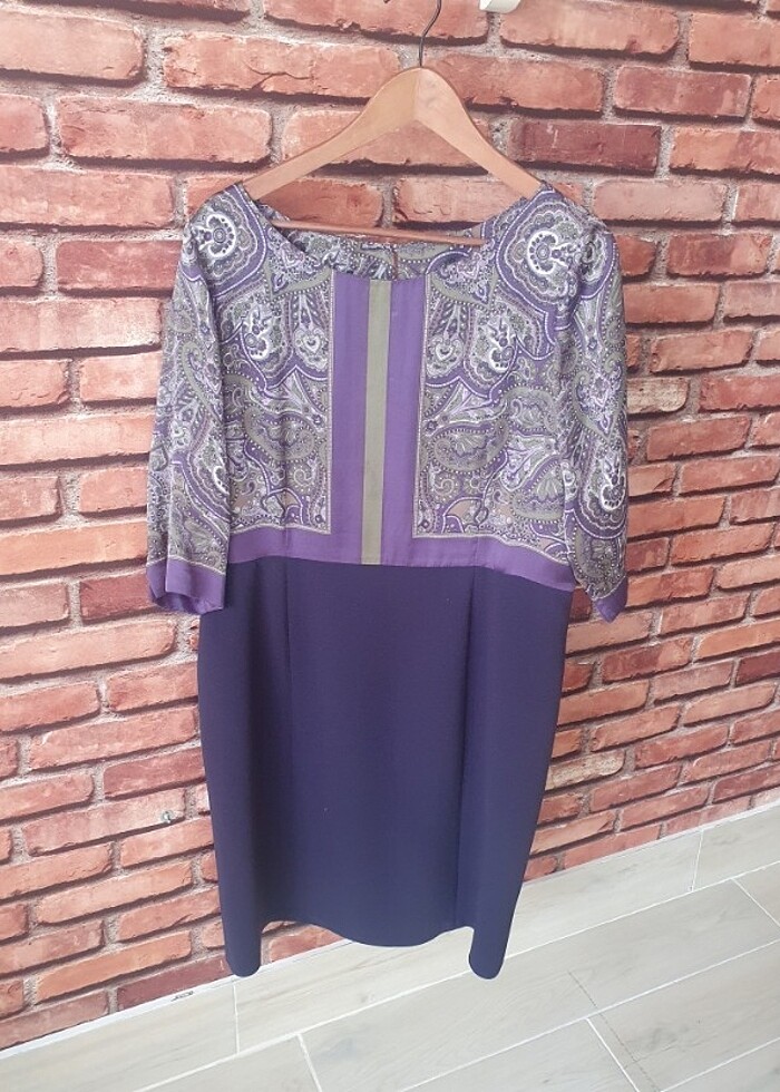 Elbise Üst beden ipek, alt beden krep kumaş. Çok şık ve zarif 3/5 kere giyildi. Dar kalıp. 44/46 bedene olur. İki koltukarası 56 cm Bel 50 cm.