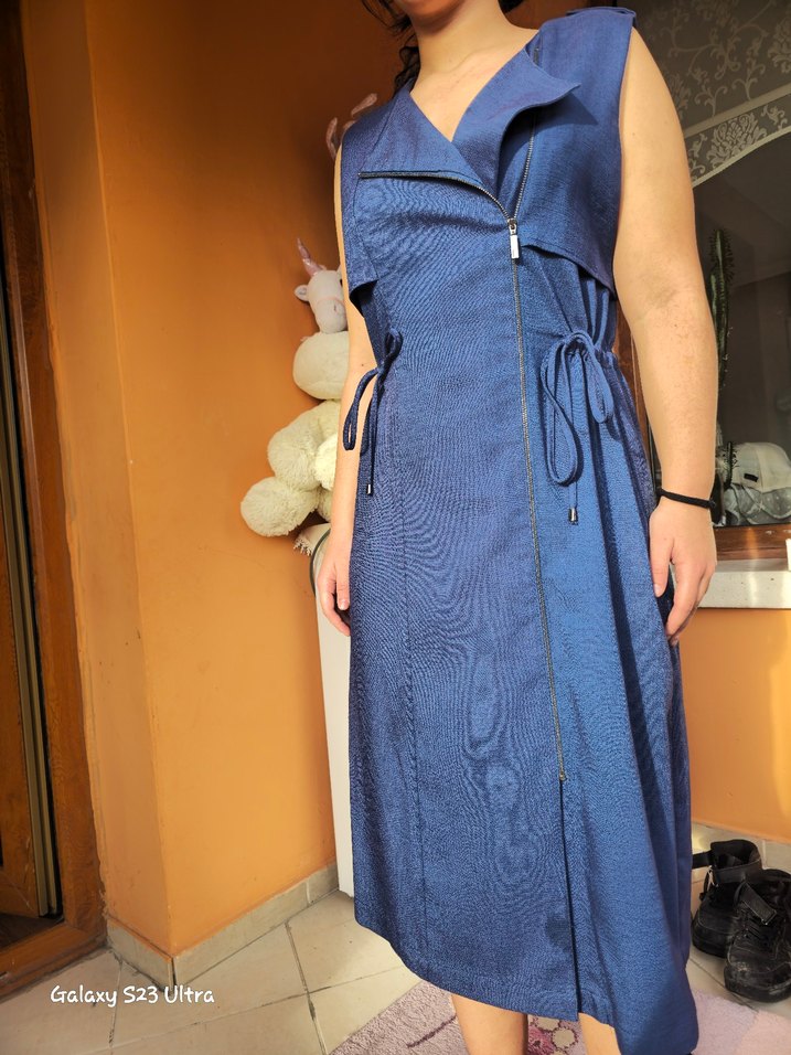ön yandan fermuarli, belden ayarlanabilir büzgülü, ister yelek ister elbise olarak kullanılabilir. istediginiz kiloda olsanizda ayarlanabilir olmasi kullanim kolayligi saglamakta.manken 38 beden giyiyor, ürün beden 44. ayarlanabilir olduğu icin istediğiniz bedende kullanabilirsiniz