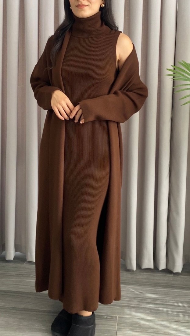 Triko takım standart bedendir,her bedene uyum sağlar. Hırkalı elbise takım