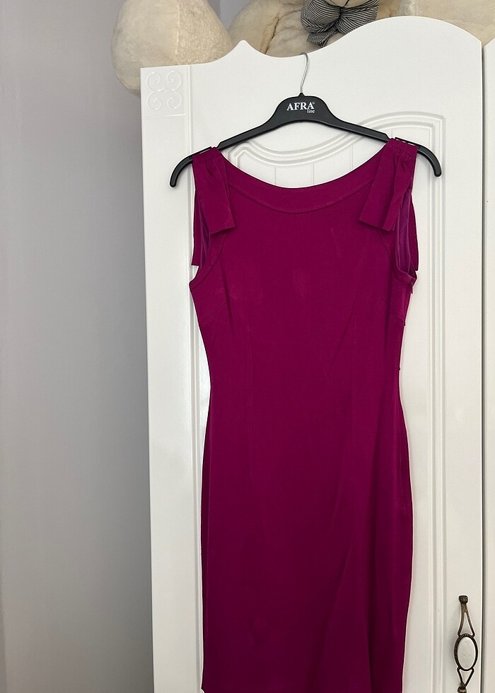 Vücudu saran sırtı açık dekolte elbise fuşya renginde