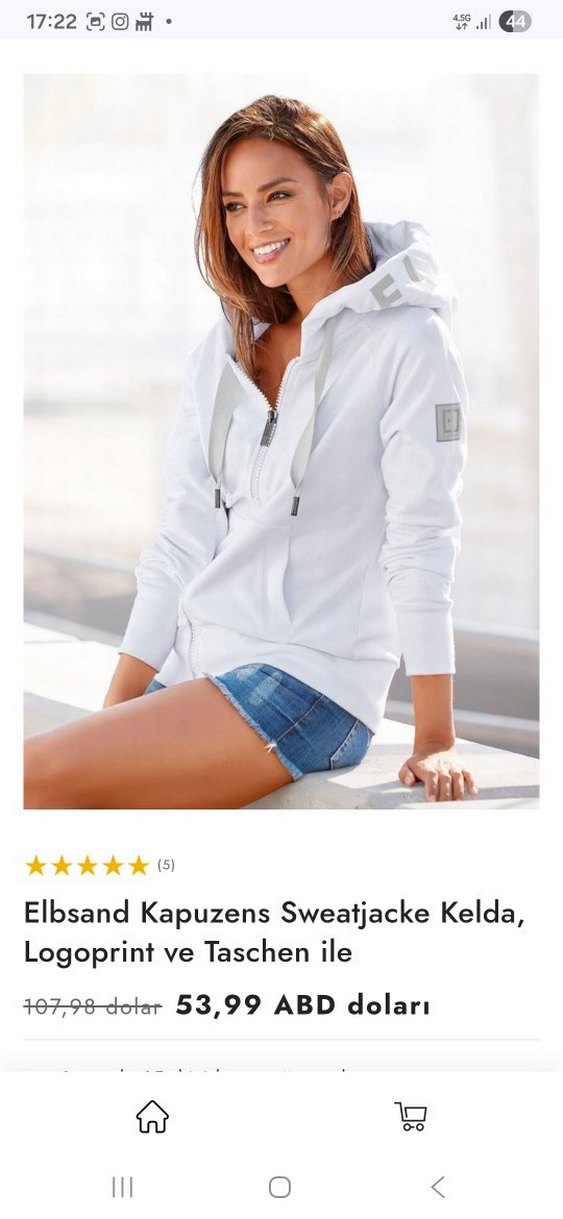 Elbsand markasının beyaz kapüşonlu, fermuarlı, logolu ve cepli sweatshirtü. Yumuşacık dokusu orj