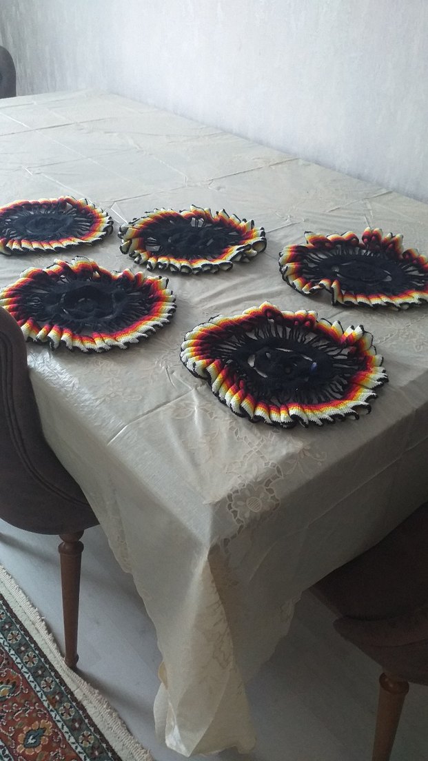 Elde Örülmüş Renkli Dekoratif Tabak Altlıkları