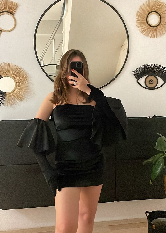 Yarasa kol kadife kısa elbise