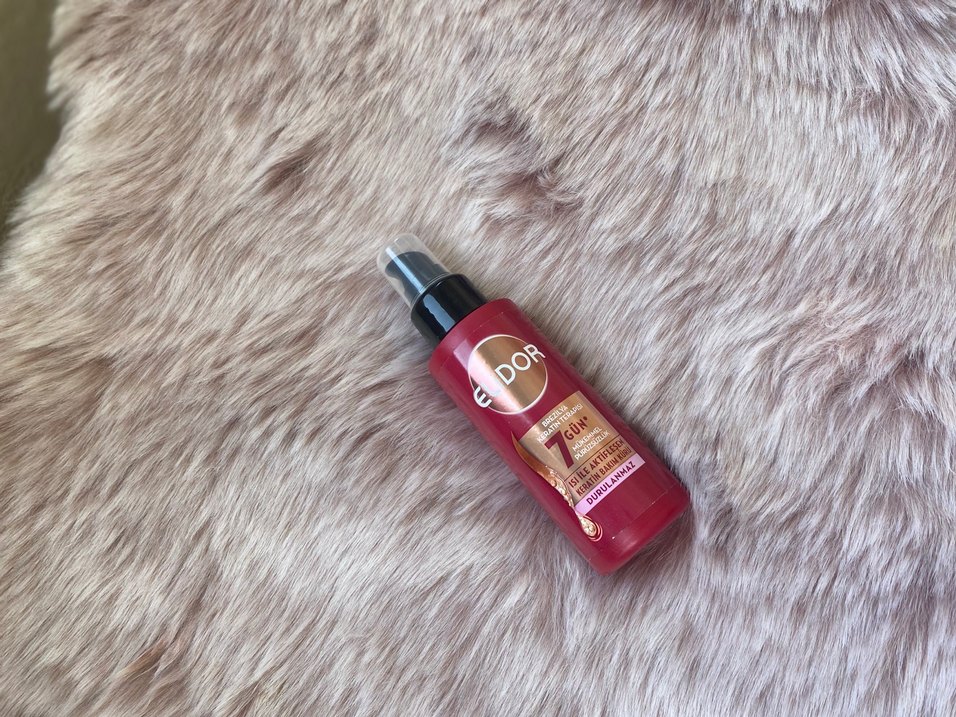 Eldor 7 gün saç bakım spreyi, durulanmayan formülüyle saçlara derinlemesine bakım ve koruma sağlar. Saçları güçlendirir ve canlandırır. ♀️
