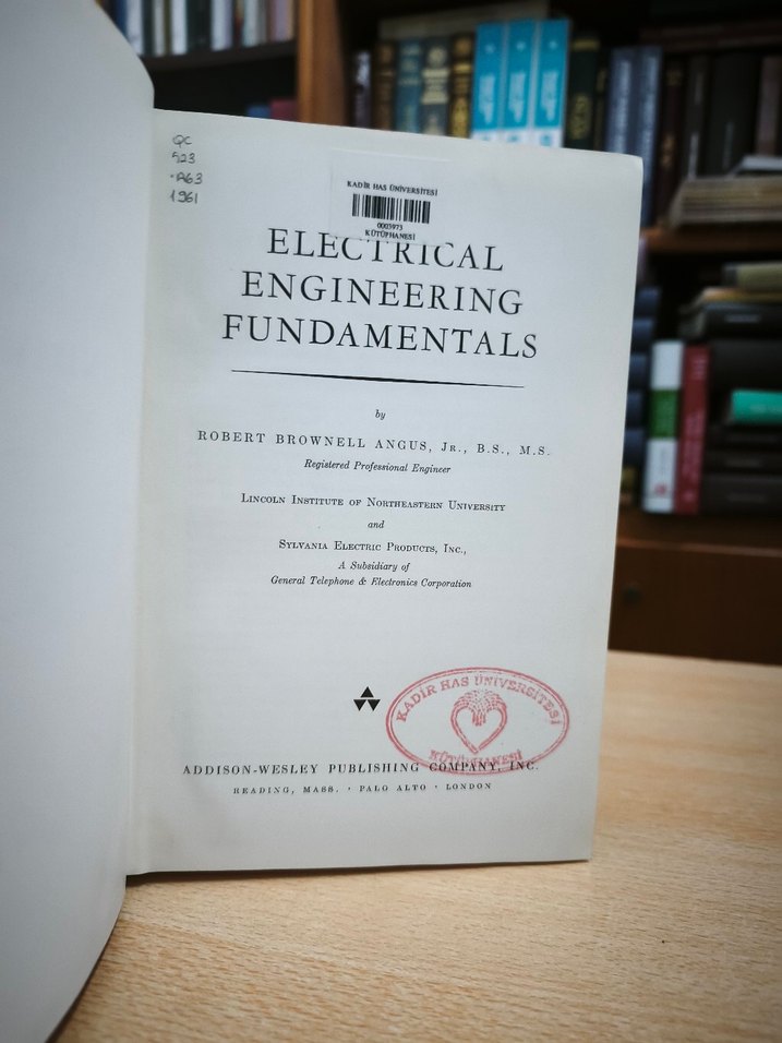Electrical Engineering Fundamentals ✍️ Robert Brownell Angus Addison Wesley Publishing Company Ciltli ve Temiz Elektirk Mühendisliği Kitabı İngilizce Metin Kütüphane çıkması, damga ve etiket mevcut