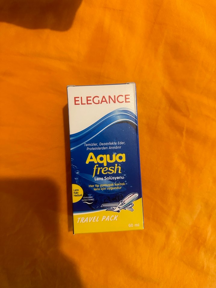 Elegance Aqua Fresh lens solüsyonu, lensleri temizler, dezenfekte eder ve korur. 60 ml seyahat boyu pakette sunulmuştur. ✈️ skt 2028/06