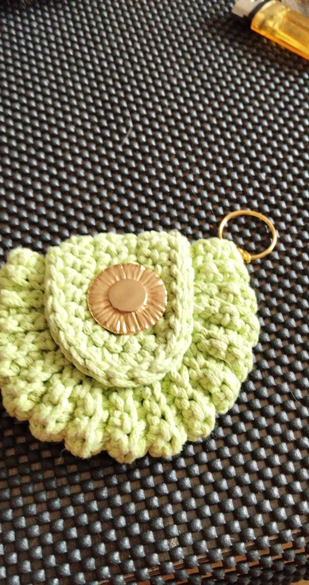 Renkli yeşil örgü bohem tasarımlı anahtarlık, dekoratif düğme ve metal halka içerir. Rahat ve retro tarz için uygundur.