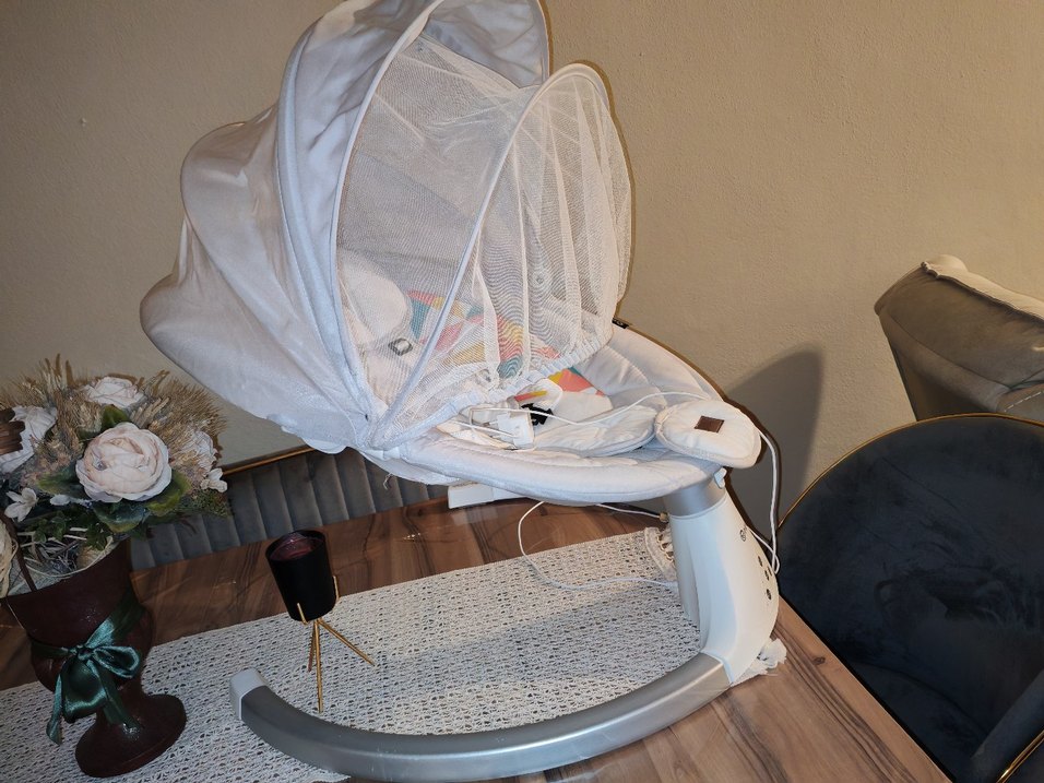 Koruyucu tül örtüsü ve sağlam tabana sahip beyaz bebek beşiği ve sepeti, bebekler için rahat bir dinlenme alanı sunar . Bebeğim kullanmadığı için satıyorum yepyeni duruyor