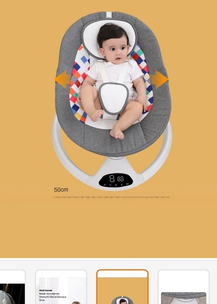 Sıfıra yakın elektrikli sallanır beşik. Hiçbir kusuru yoktur. Çocuğuma küçük geldiği için satıyorum