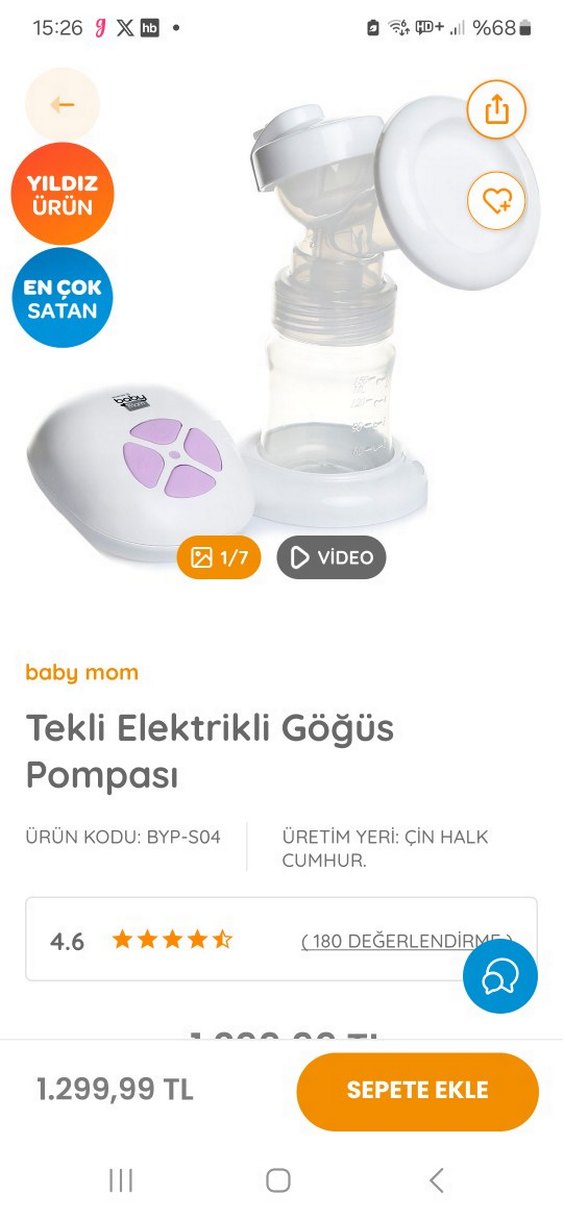 Baby Mom tekli elektrikli göğüs pompası, hafif yapısı ve kolay kontrol düğmeleri ile öne çıkar. Masaj özelliği ve kademeli güç seçimleri var. Bebeğim biberon kabul etmediği için çok az kullandım. Kullanımı rahat can yakmıyor gücü yeterli seviyede. Kutusuyla birlikte göndereceğim