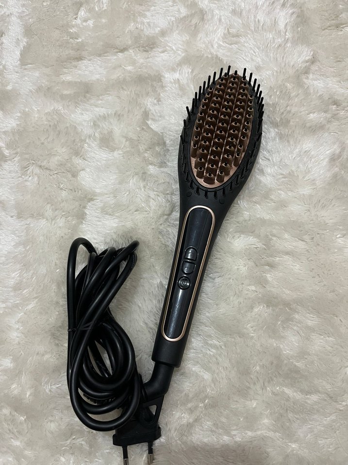 Ayarlanabilir ısı ayarlarına sahip elektrikli saç düzleştirici fırça, rahat tutuş ve uzun kabloyla kolay kullanım sağlar. Bir kez denedim sadece. Arzum marka