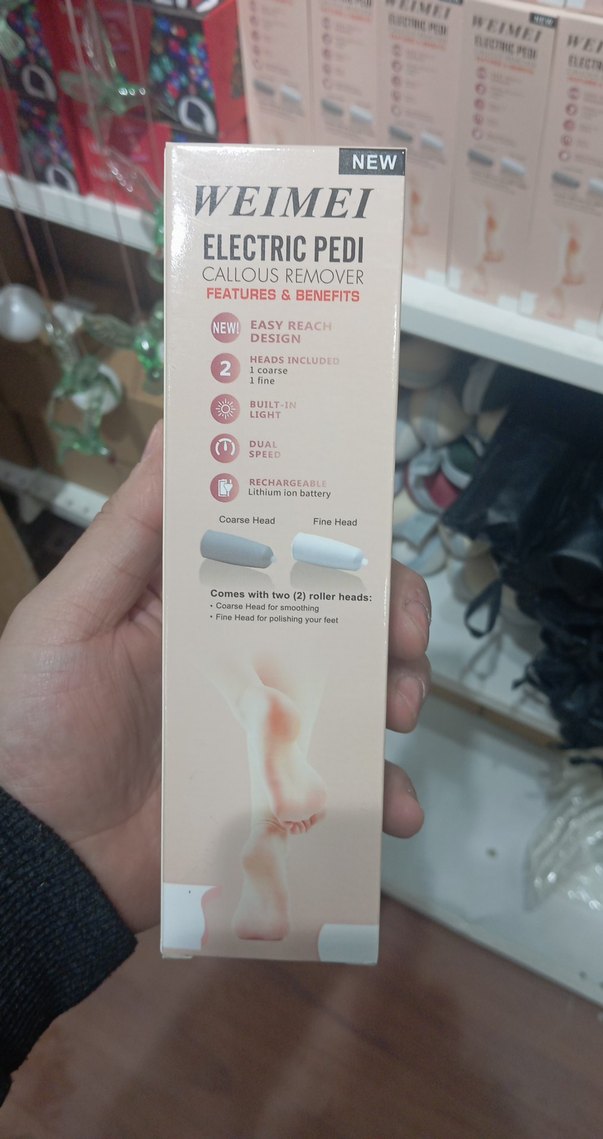 Elektrikli Topuk Törpüsü, iki başlıklı, dahili ışıklı, çift hızlı ve şarjlı lityum iyon pil ile ayak bakımı sağlar.