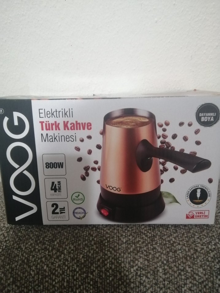800W gücünde, 4 fincan kapasiteli, 2 yıl garantili koyu kahverengi elektrikli Türk kahve makinesi. Geleneksel kahve demlemek için kompakt ve kullanımı kolay. ☕
