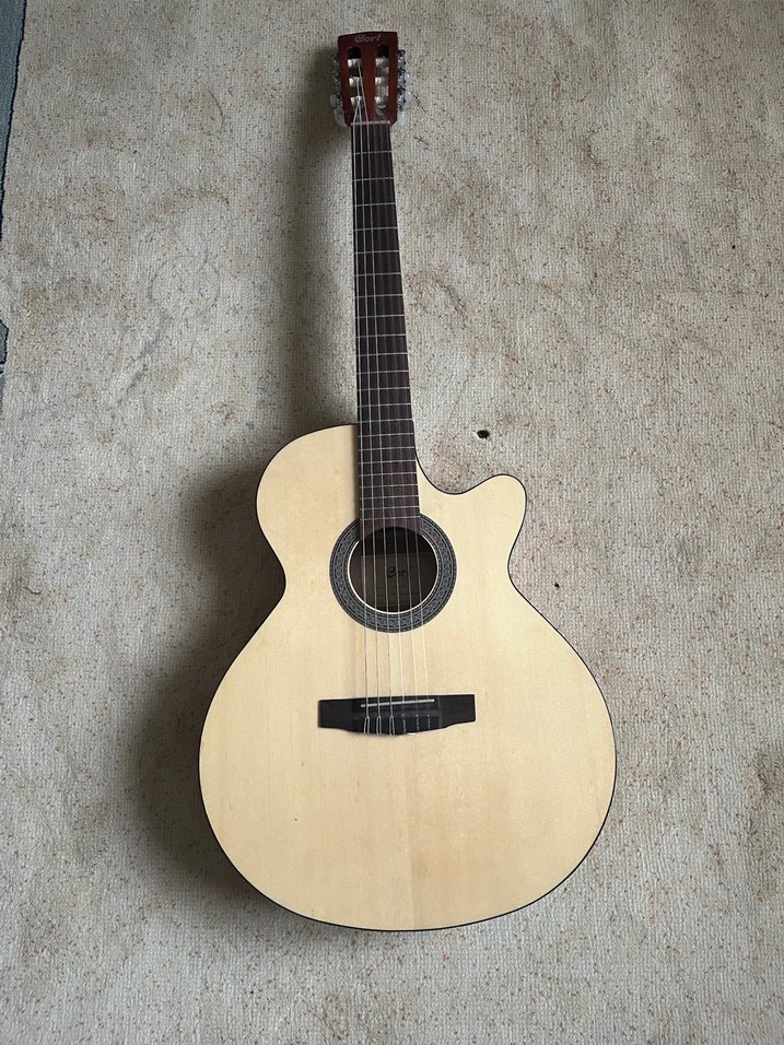 Bej renkli, elektro aksamı hiç kullanılmamış, Cort markalı şahsi gitarım.
