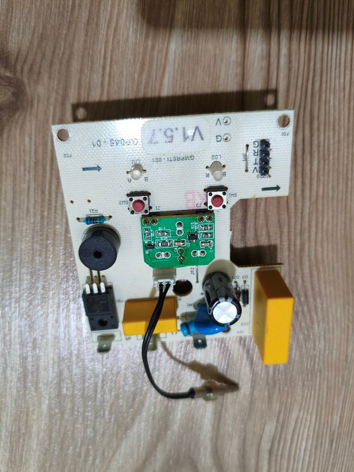 Çeşitli elektronik parçalar içeren beyaz bilgisayar bileşeni devre kartı, açık renkli yüzeyde yer alıyor. ⚙️