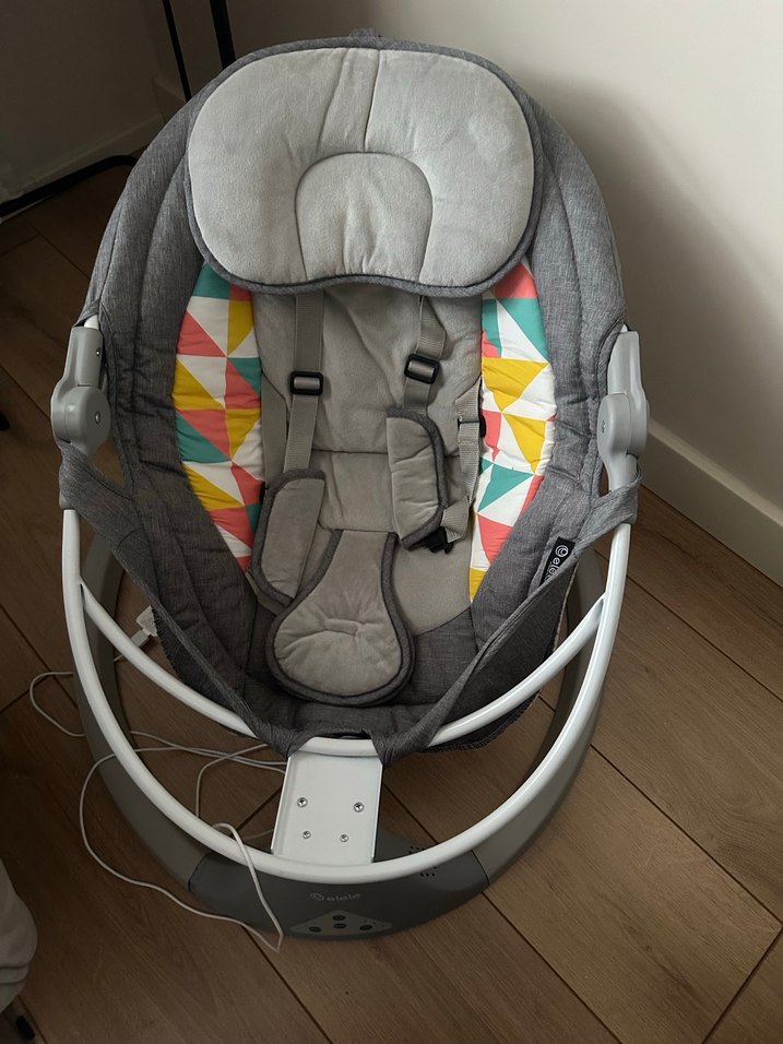 Gri bebek ana kucağı renkli geometrik desenli yanları ve ayarlanabilir emniyet kemeri ile rahat yastıklıdır. Bebeğime bir kaç ay önce aldığım bu ana kucağını maalesef hiç sevmedi :) 2-3 kez zorla durdurduk . Yeniden farksızdır . Ancak kumandasını kaybettik . Ama üzerindeki tüm tuşlar çalışıyor . Bluetooth özelliklidir. Hiç bir deformesi yoktur. Üzerindeki tentesi de mevcuttur.