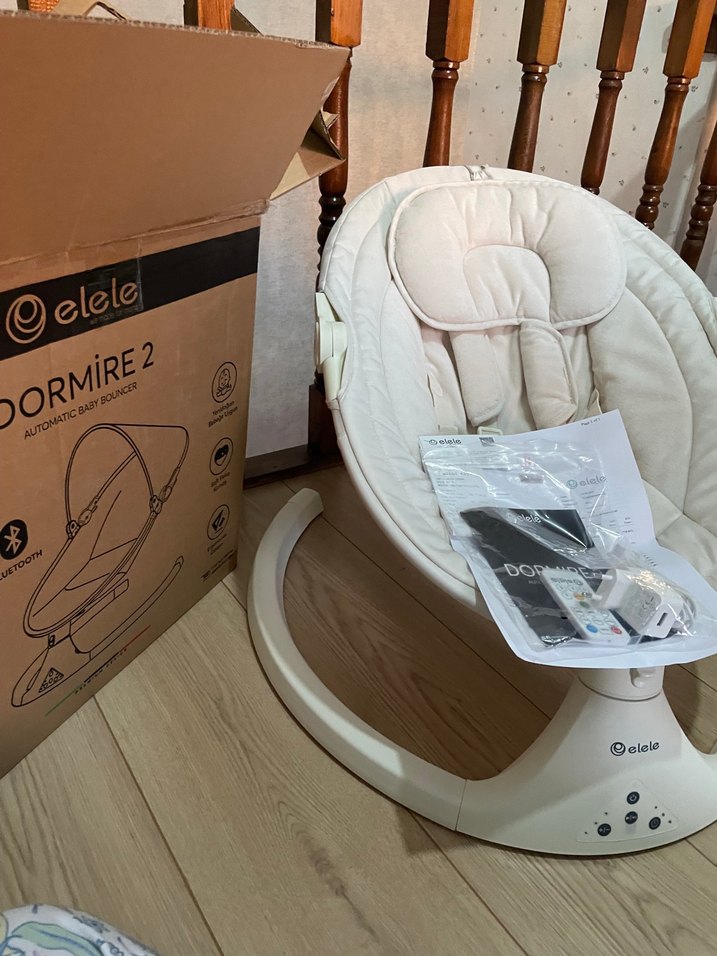 Elele Ormire 2 otomatik bebek salıncağı, beyaz yumuşak minder ve ergonomik tasarıma sahiptir. Kontrol düğmeleri ve kullanım kılavuzu ile birlikte gelir. Garantisi devam ediyor 2 yıl garantilidir 2 ay kadar kullanıldı tertemiz