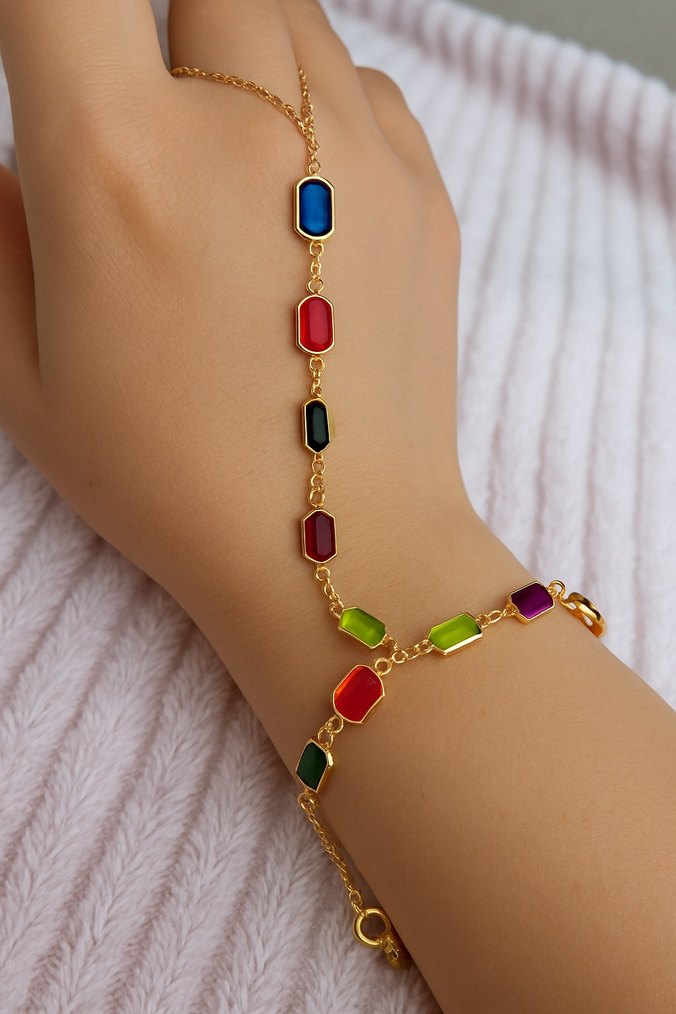 Element renkleriyle süslenmiş zincir detaylı kadın el zinciri. Bohem ve retro tarzlardan ilham alınmıştır, günlük kullanıma uygundur.