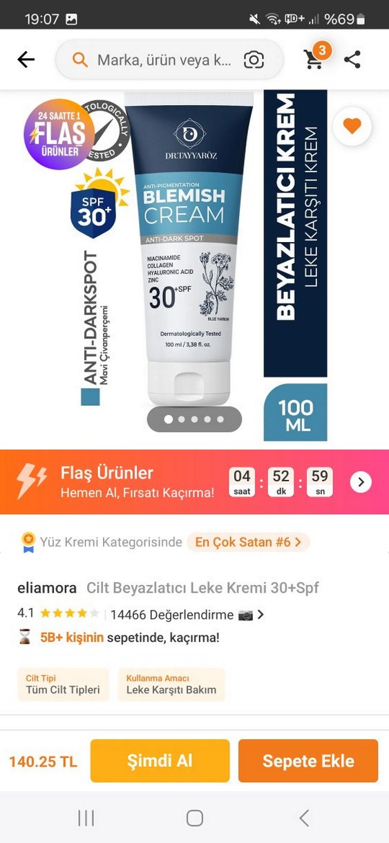 eliamora beyazlatıcı leke kremi 30+ SPF koruması ile cilt lekelerine karşı korur, tüm cilt tipleri için uygundur. Niacinamide, kolajen ve hyaluronik asit içerir. Dermatolojik olarak test edilmiştir.