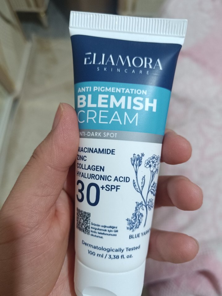 Niacinamide, çinko, kolajen ve hyaluronik asit içeren Eliamora BB krem, leke karşıtı bakım ve SPF 30 koruma sağlar. Dermatolojik olarak test edilmiştir.