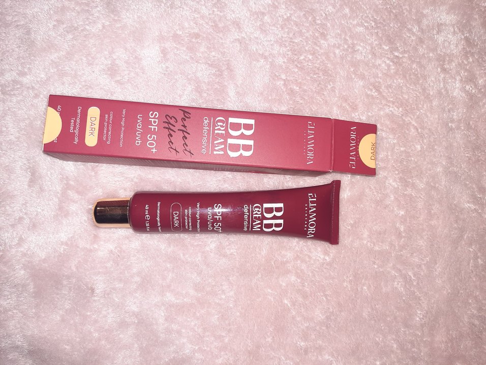 Eliamora parlak bordo renk BB krem, UVA/UVB koruması ve SPF50+ ile cildi korur. Koyu ton ve parlak bitiş sağlar. 1 kere denendi bana uymadı