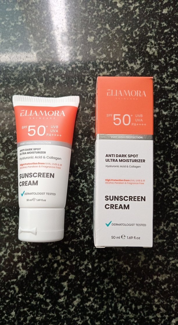 Eliamora güneş kremi SPF 50+ koruma sağlar, anti leke ve ultra nemlendirici özelliklere sahiptir. Hyaluronik asit ve kolajen içerir, dermatolog onaylıdır. 2027 son tarihi