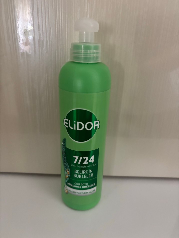 Elidor 7/24 saç kremi, belirgin bukleleri güçlendirir ve gün boyu doğal bukle bakımı sağlar. 2 parmak kadar kullanıldı.