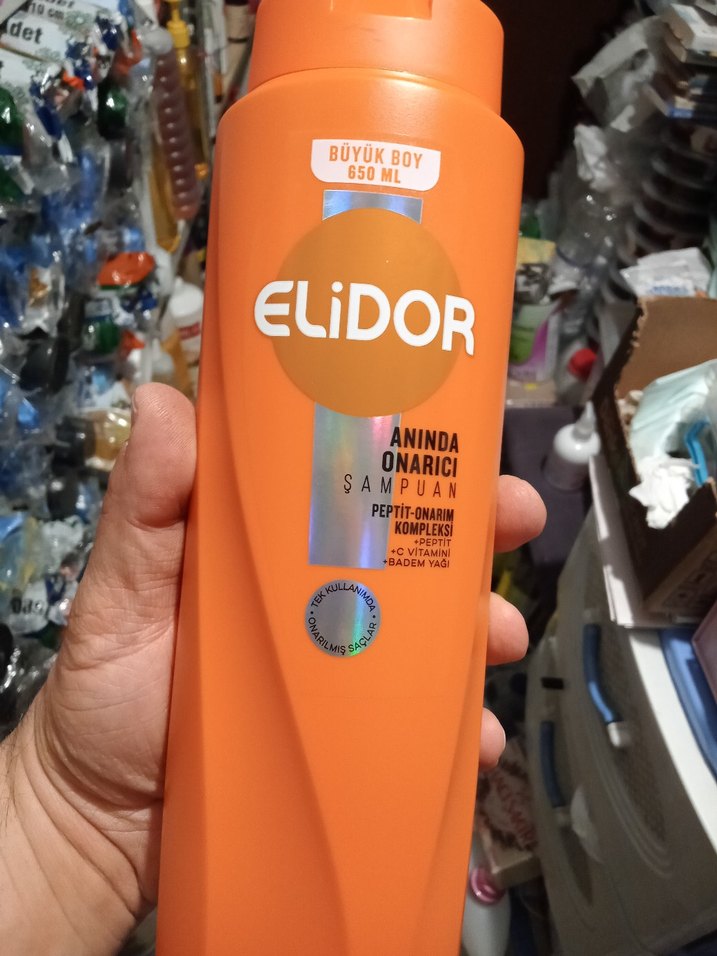 Elidor Anında Onarıcı Şampuan, peptit-onarım kompleksi, B vitamini ve makadamya yağı ile saçları hemen onarır. Büyük boy 650 ml şişe.