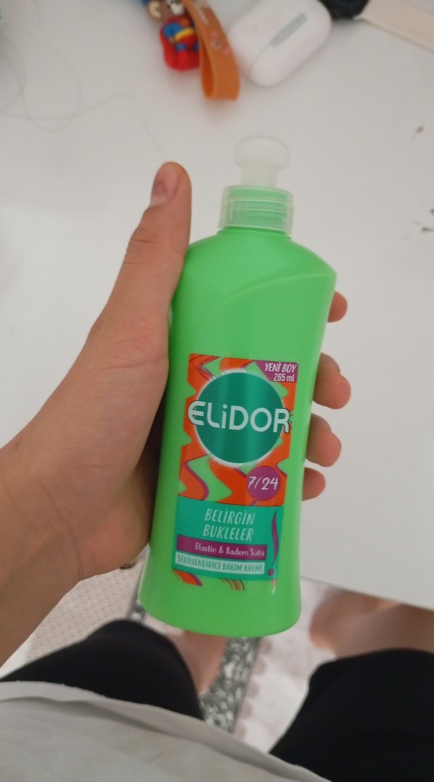Elidor Belirgin Bukleler saç kremi, elastin ve badem suyu içerir, bukleleri 7/24 belirgin tutar. 265 ml pompalı şişede kolay kullanım sunar.