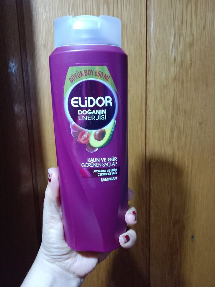 Elidor Doğanın Enerjisi şampuan, avokado ve zeytin özleri ile kalın ve güçlü görünen saçlar için. Büyük boy 650 ml.