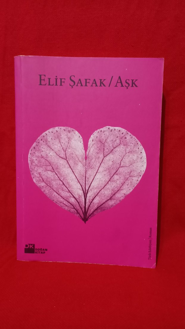 Elif Şafak'ın "Aşk" romanı, sevgi ve bağlılık temalarını işler. Kitabın kapağı pembe ve kalp şeklinde bir yaprak resmi bulunur. Kitap orjinal bandrollü ve temiz durumdadır