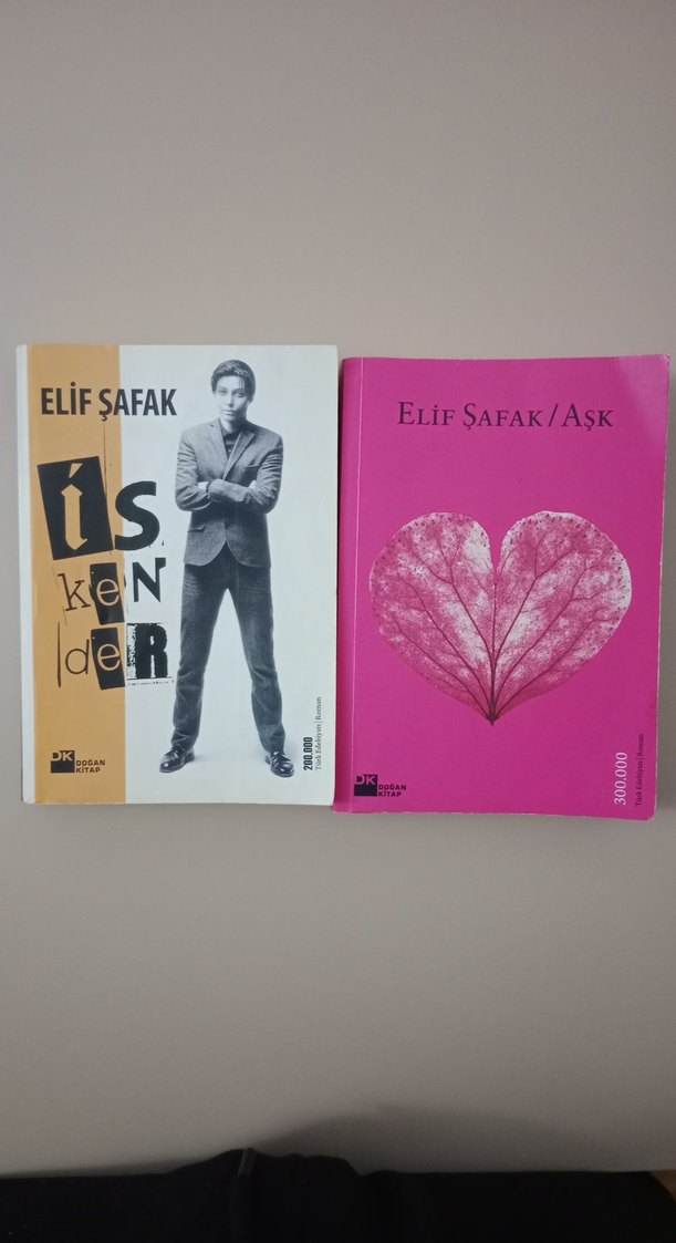 Elif Şafak'ın İskender ve Aşk adlı romanları. Iki kitapta temiz. Profilimdeki diğer kitaplara da bakabilirsiniz.