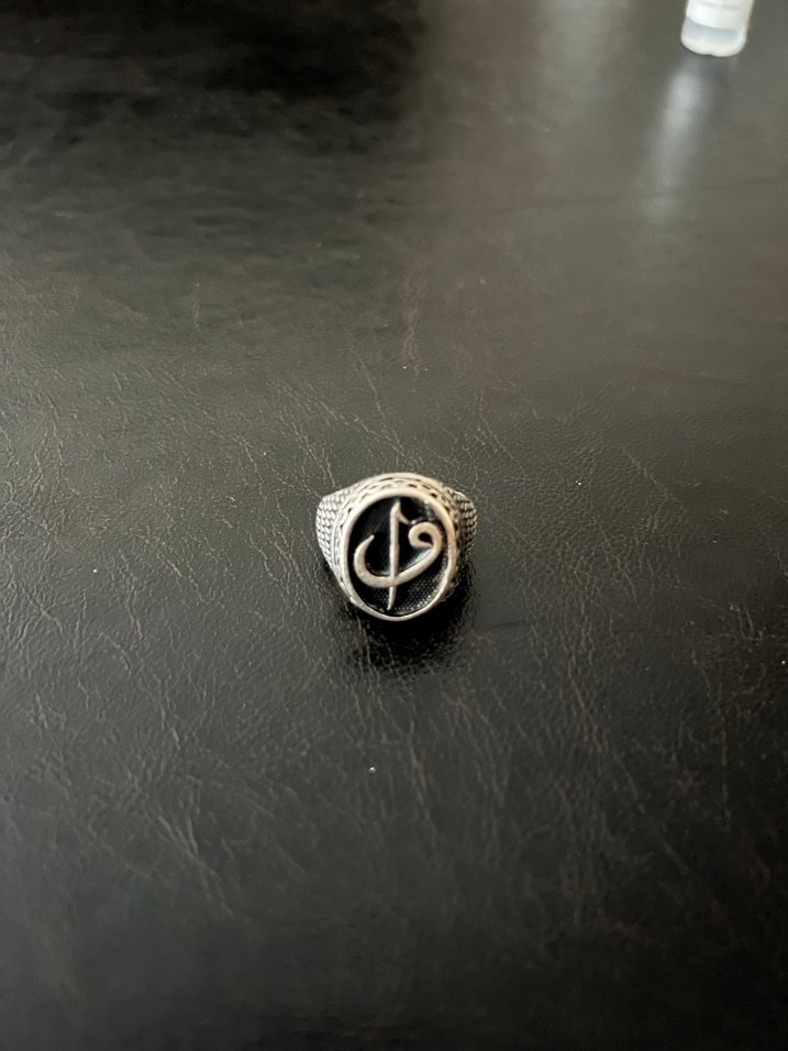 Elif Vav İşlemeli Gümüş Erkek Yüzük