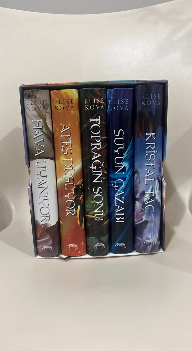 Elise Kova'nın Hava Uyanıyor, Ateş Düşüyor, Toprağın Sonu, Suyun Gazabı ve Kristal Taç romanlarından oluşan 5 kitaplık set. Çok çok iyi durumda. Kutulu , her kitap ciltlidir. Güncel fiyatı son fotoğraftadır. Ben yarı fiyatına sıfır ayarında satıyorum