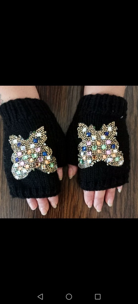Renkli boncuk işlemeli kelebek desenli siyah örgü kadın eldiven, rahat ve gotik bohem tarzı sunar. #eldiven#elişieldiven#örgüeldiven#tasarımeldiven#