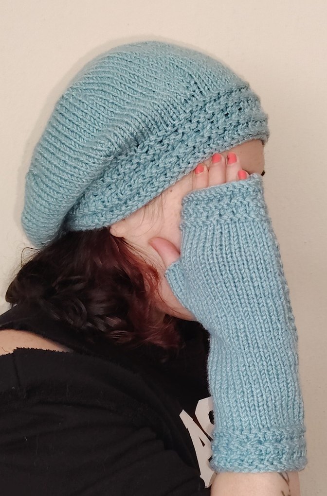 Pastel mavi renkli kadın bere, yumuşak örgüden yapılmış olup rahat ve konforlu bir kullanım sunar, sade ve karşı kültür tarzındadır.