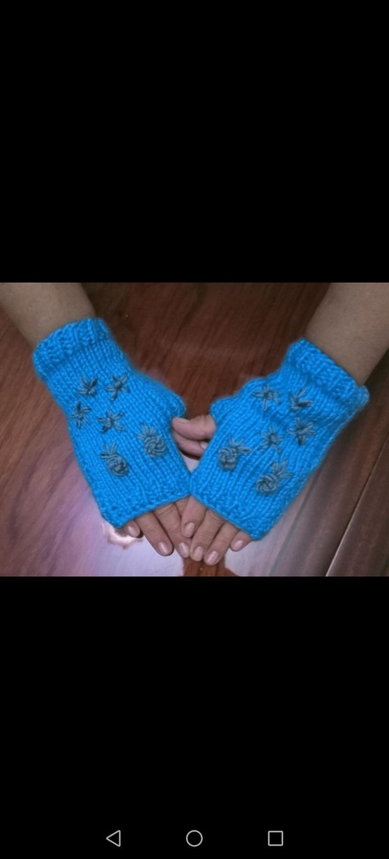 Yumuşak örgüden yapılmış mavi parmaksız kadın eldivenleri, rahat bohem tarzıyla süslenmiş. Canlı ve retro görünüme uygun. #eldiven#elişieldiven#örgüeldiven#tasarımeldiven#