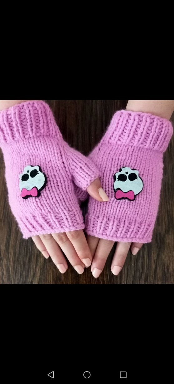 Pembe örgü, parmakları açık kadın eldivenleri, gotik tarzda kafatası detayıyla rahat bir dokunuş sunar. #eldiven#elişieldiven#örgüeldiven#tasarımeldiven#