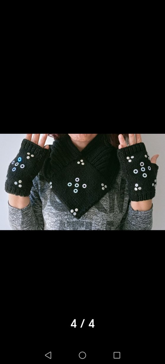 Siyah örgü parmakları açık eldivenler, göz detaylarıyla gotik ve rahat tarz sunar. Moda ve avangart görünüm için ideal. #eldiven#k#tasarımeldiven#örgükaşkol#