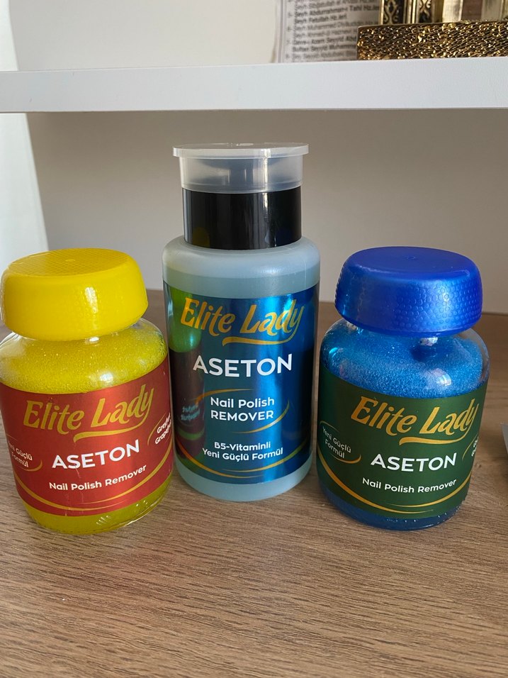 Elite Lady markasının B5 vitaminli yeni formüllü üç farklı şişede asetonu tırnak ojesi temizleyici. Hiç kullanılmadı 3 adet fiyatı