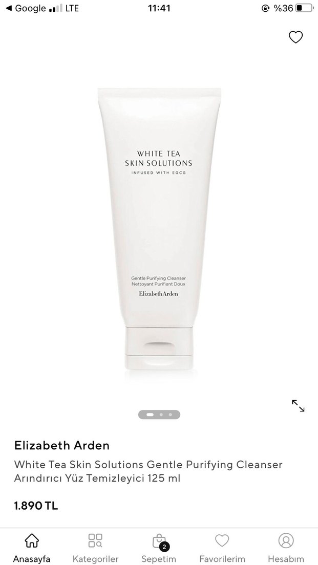 Elizabeth Arden White Tea Skin Solutions Arındırıcı Yüz Temizleyici, beyaz çay özü ile nazikçe temizler. 125 ml, günlük kullanım için uygundur. Ürün 50 ml 2-3 kullanım kaldı denemek isteyenler için