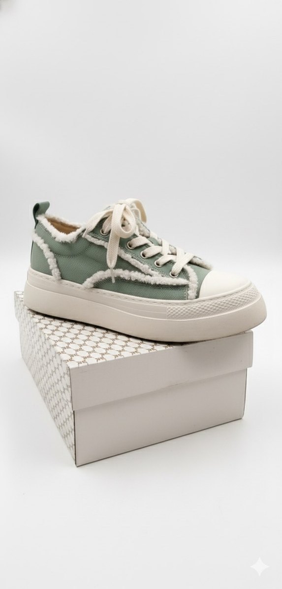 Severek aldığım Elle marka, trend açık yeşil renkteki platform spor ayakkabımı sadece iki kez giyebildim. Ayağıma büyük geldiği için üzülerek satıyorum. Fotoğraflarda da görebileceğiniz gibi ayakkabı yepyeni durumdadır ve hiçbir kusuru yoktur. Platform topuklu olmasına rağmen inanılmaz derecede rahat bir kalıba sahiptir, gün boyu ayakta kalsanız bile yormaz. Üst kısmının kumaş olması hem şık bir görünüm katıyor hem de ayağınızın hava almasını sağlıyor.