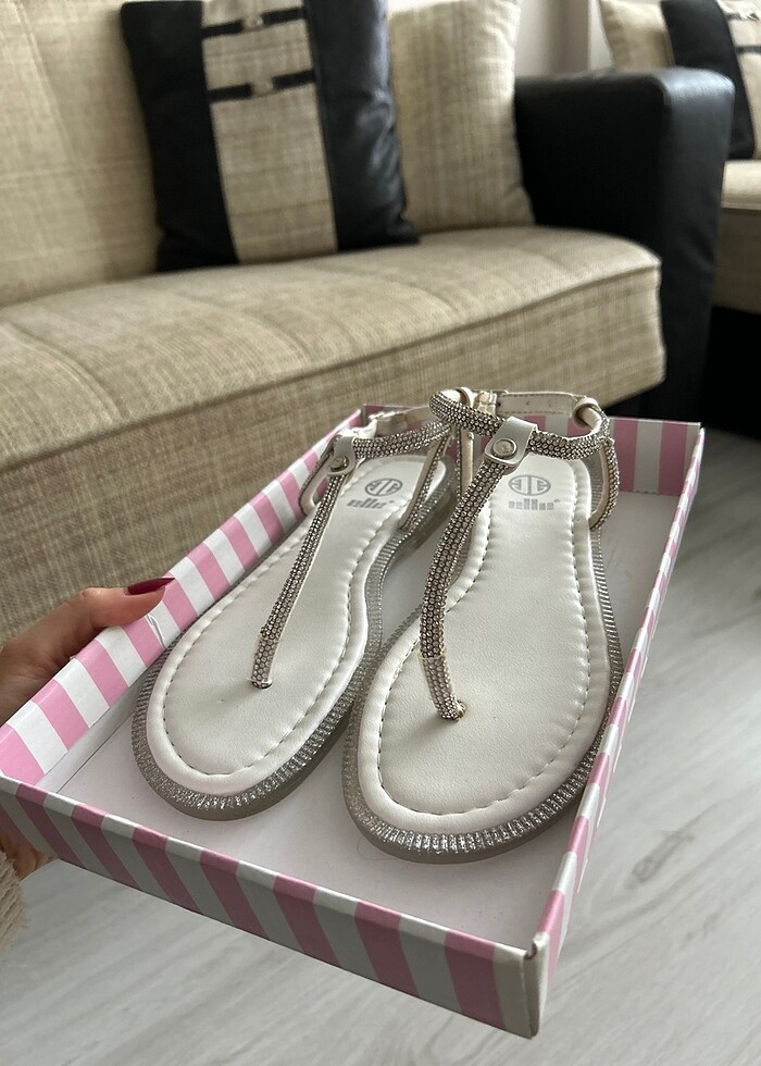 37 numara ve yepyeni beyaz taşlı sandalet, kusuru yoktur