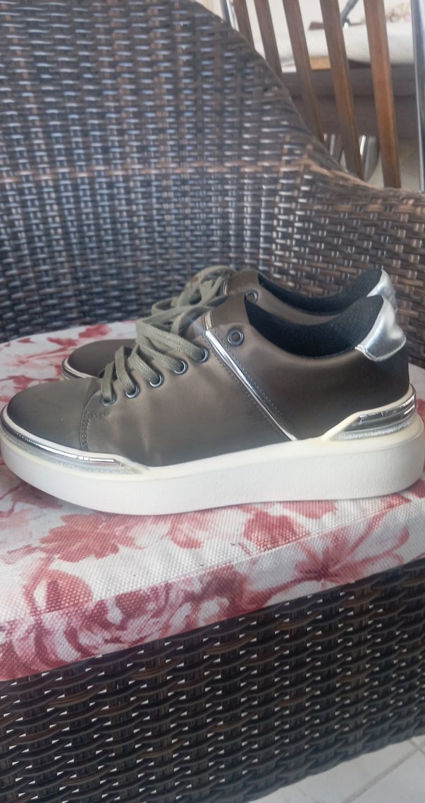 giyilmesi. iç etikeiduruyor. alt taban beyaz kısım dolapta beklemekten hafif sararmış. silinmesi gerekiyor. yeni tertemiz orijinal Elle