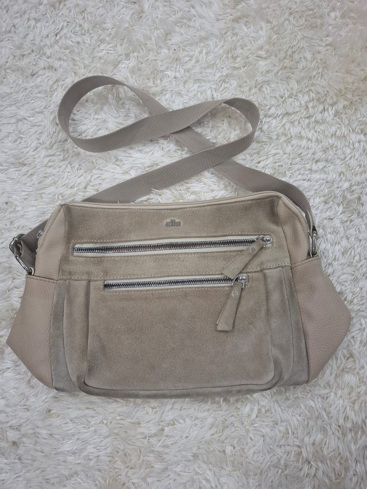Krem renk askılı çanta, renginden dolayı çabuk kirleniyor. Bir kısmı süet bir kısmı deri. Tek kusuru dışının renginin atması başka bir sorunu yok.