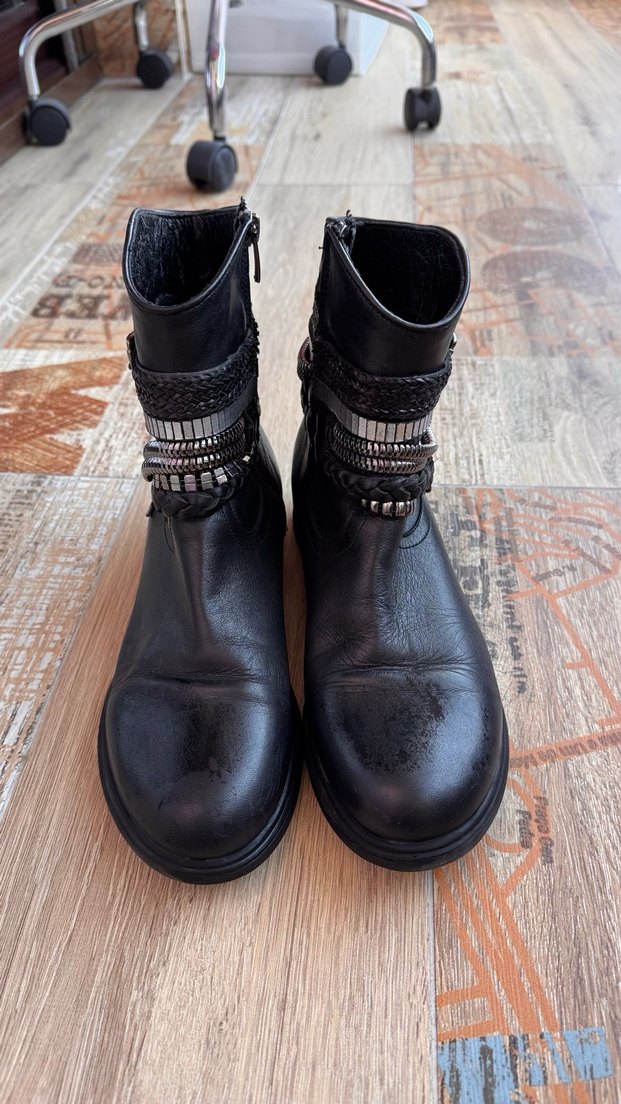 40 numara deri tokalı zincirli örgü çok rahat kadın botu