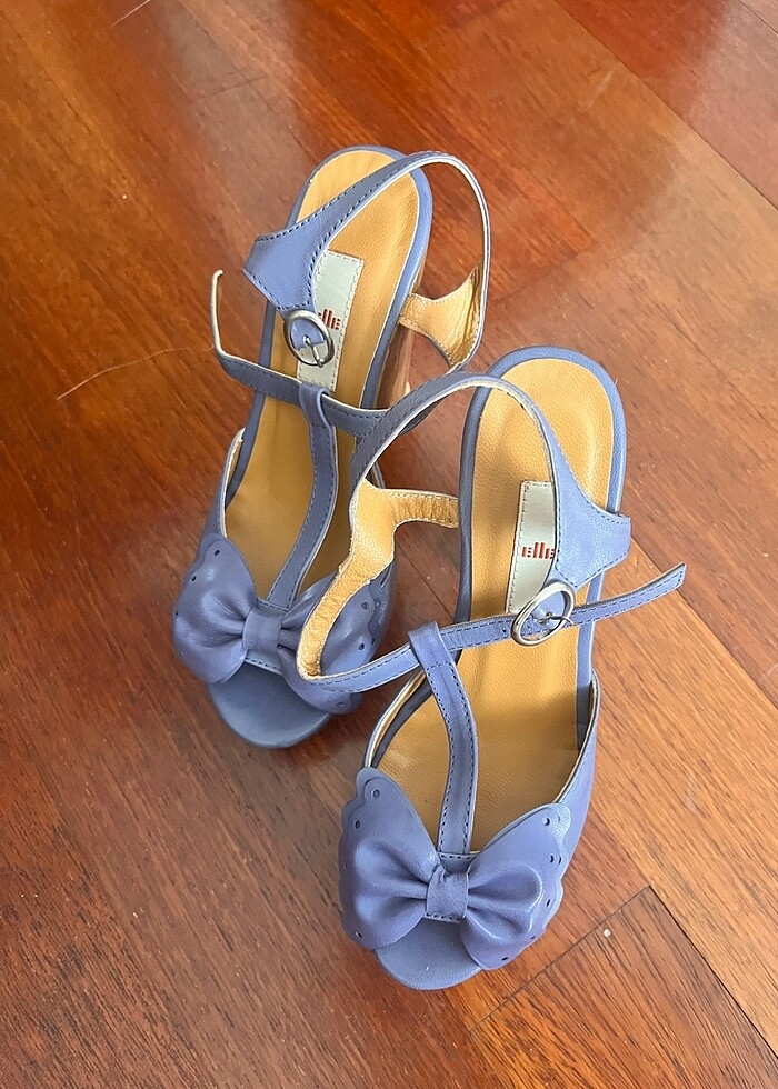 Elle marka kalın topuklu sandalet’tir. Bir kere giyilmiştir. Çok iyi durumdadır. Önden üç santim platformdur. Topuk boyu 13 santimdir.