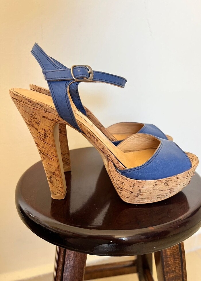 Mor-lacivert arası bir renk İç ve dış Hakiki deri Hafif kullanım izleri haricinde hiçbir sıkıntısı yoktur 4cm’si platform taban olmak üzere 13cm topuk boyu var. Yani aslında 9cm bir topuk rahatlığında şık ve hafif bir ayakkabı Tam kalıp #zara #mango #mantar #hasır #deri #sandalet #terlik #ayakkabı #topuklu
