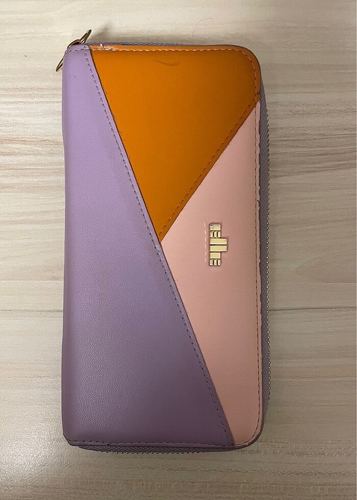 Az kullanıldı, turuncu kısmında küçük bir leke var, orta boyutta renkli, deri cüzdan.
